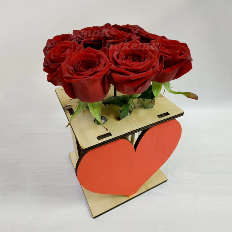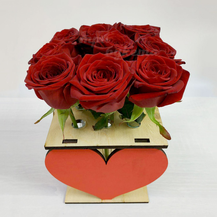 9 роз в ящике с сердцем