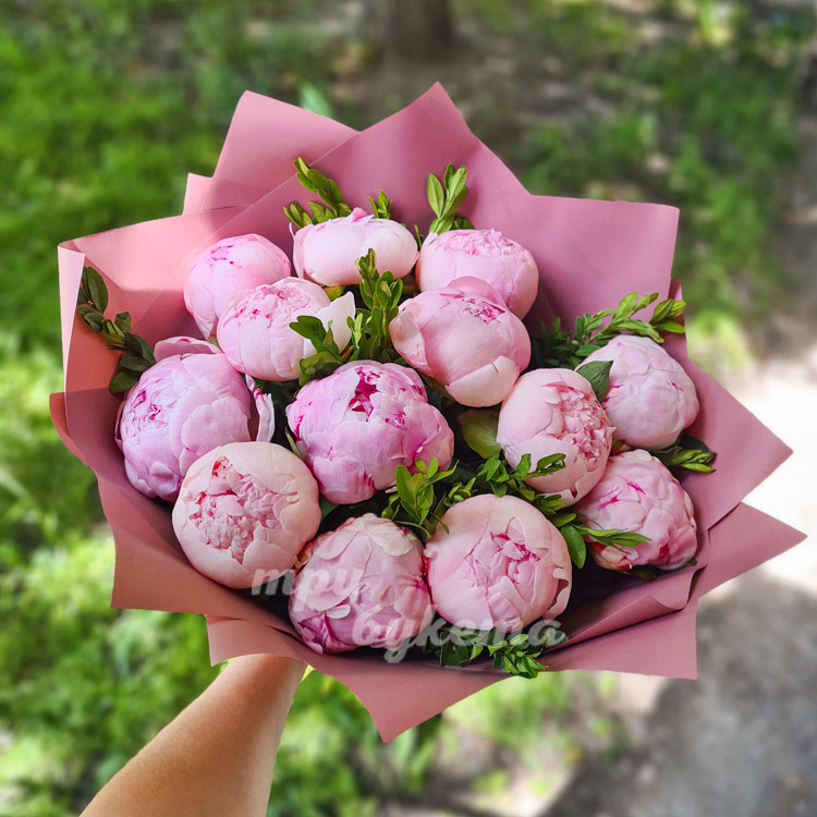 Букет из 13 розовых пионов