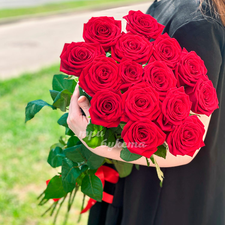 Букет из 15 красных роз 70 см