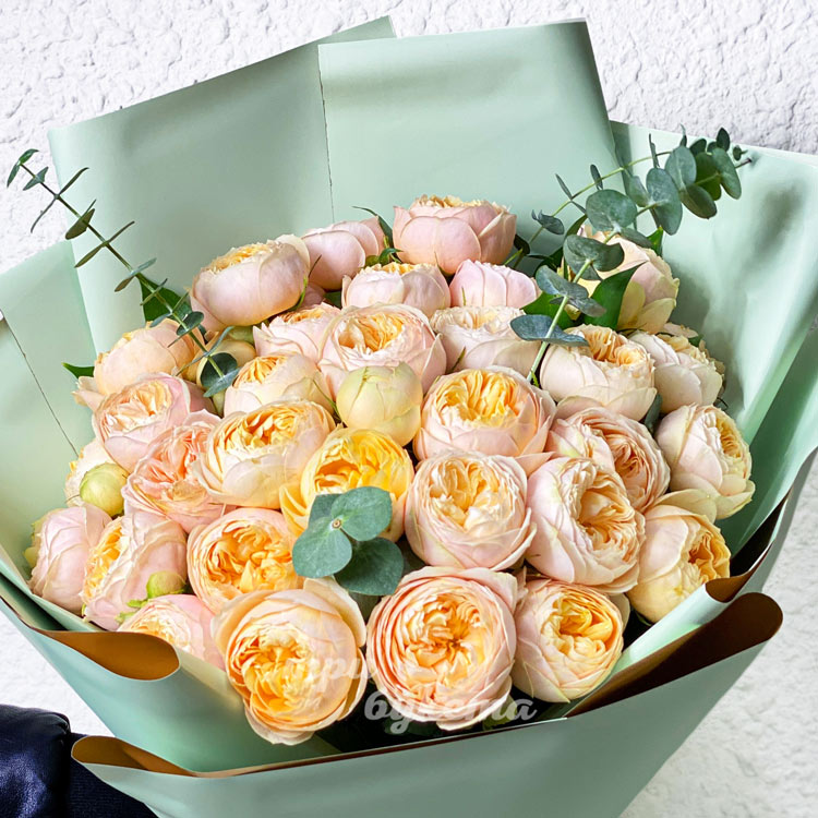 Букет из 35 персиковых пионовидных роз