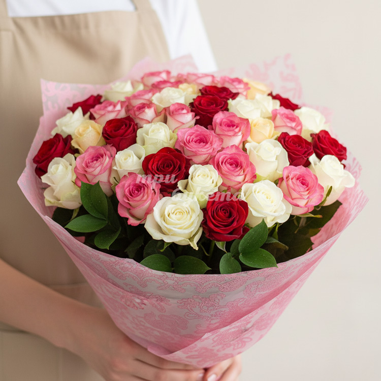 Букет из 51 разноцветной розы