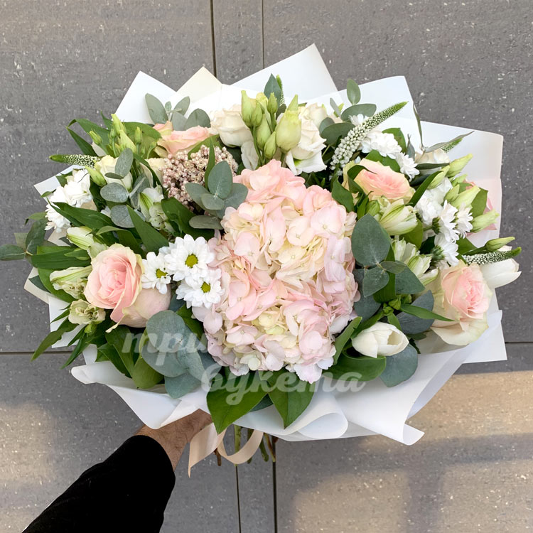 Букет из гортензии и хризантем