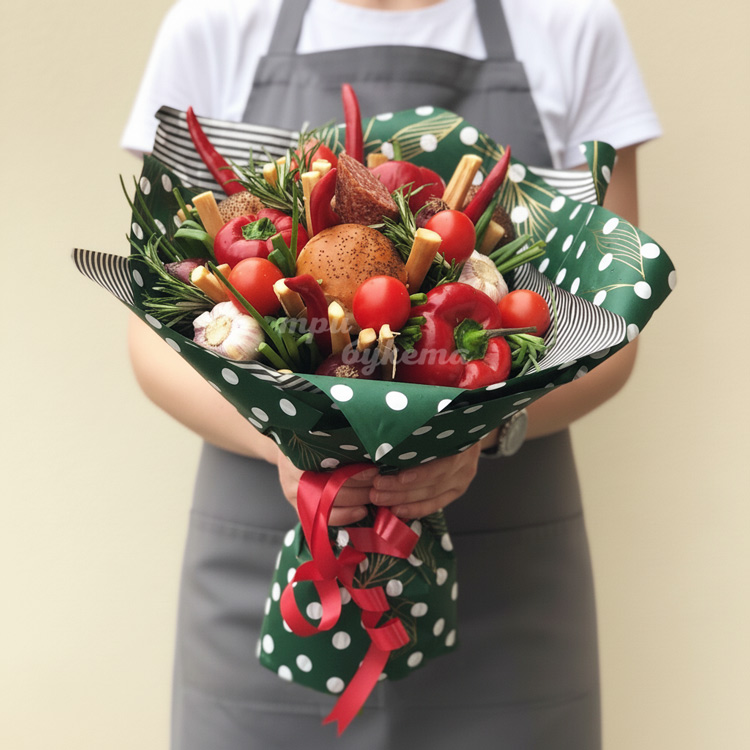 Букет из колбасы и зеленого лука