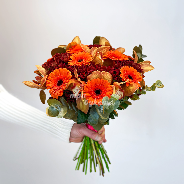Букет из оранжевых гербер и орхидей