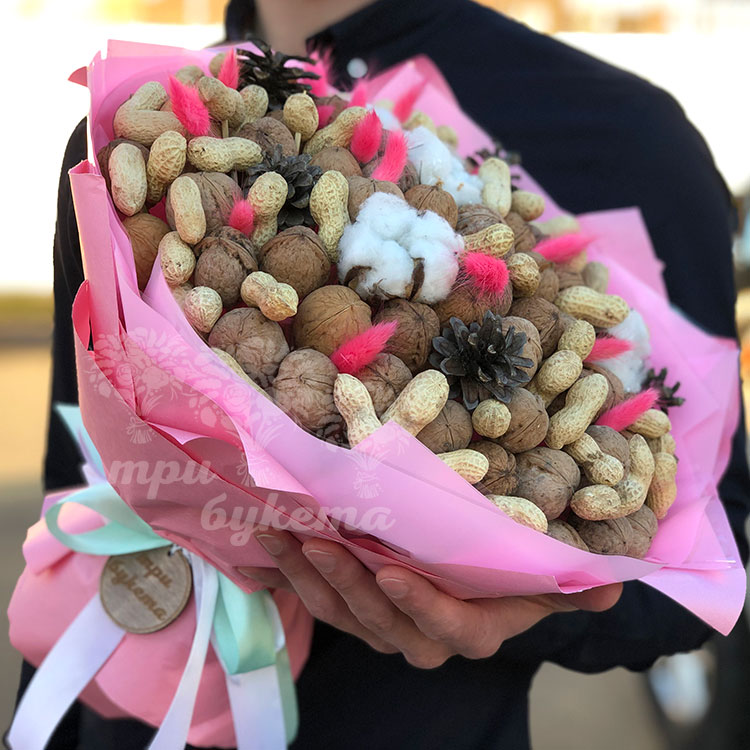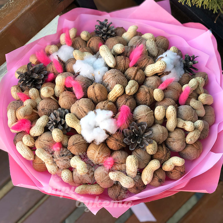 Букет из орехов и хлопка
