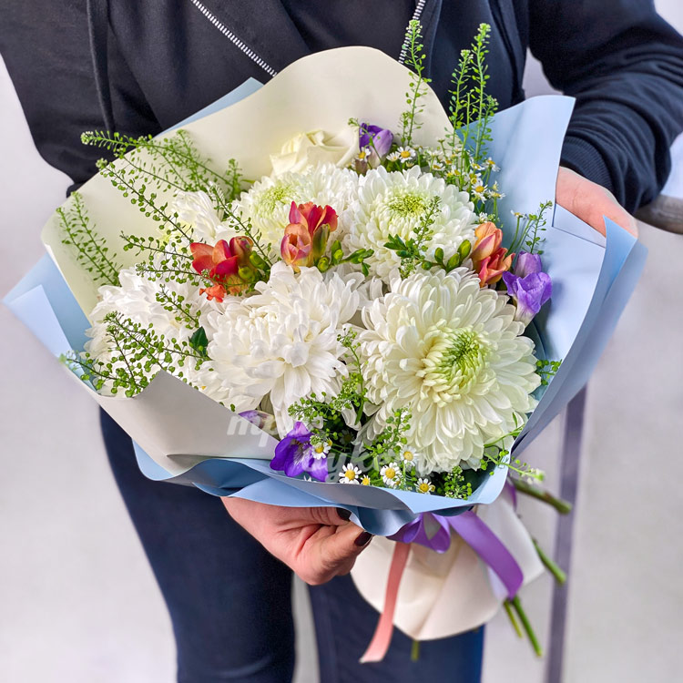 Букет из ромашек и хризантем