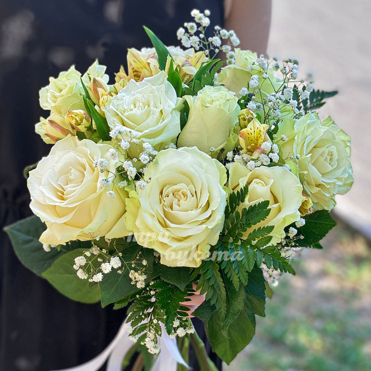 Букет из роз с гипсофилой