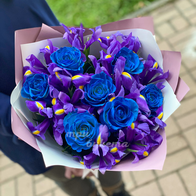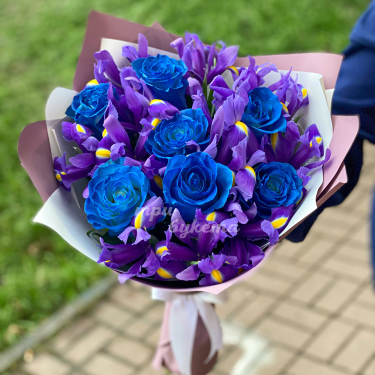 Букет из синих роз и ирисов