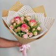 Букет розовых французских роз и эустом