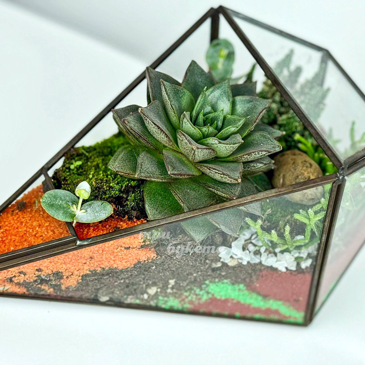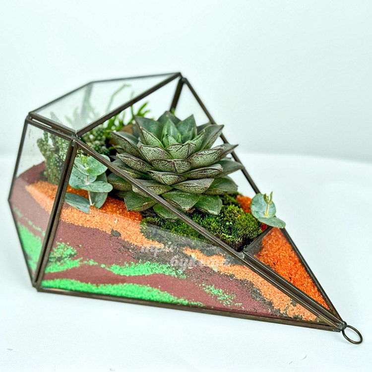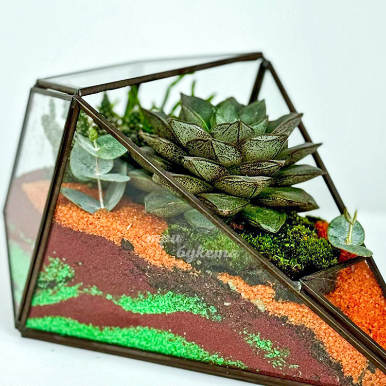 Флорариум из суккулента и яркого песка