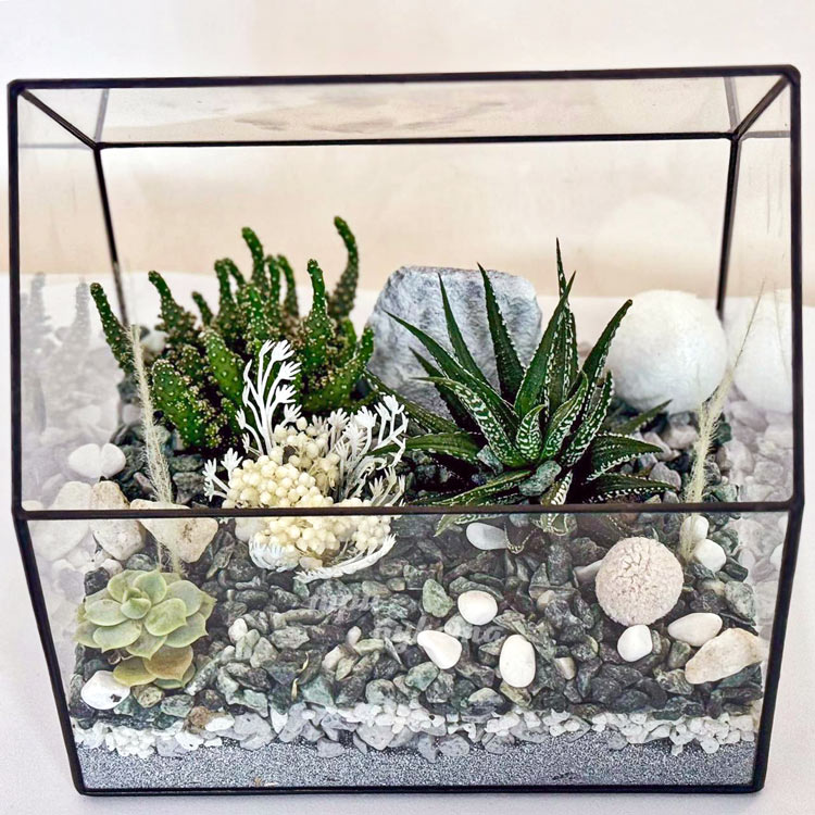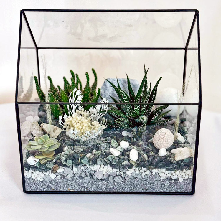 Флорариум с сухоцветами хавортией и кактусами