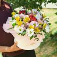 Фрезии, гиацинты и розы в ящике