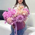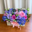 Корзина коралловых роз с гортензиями