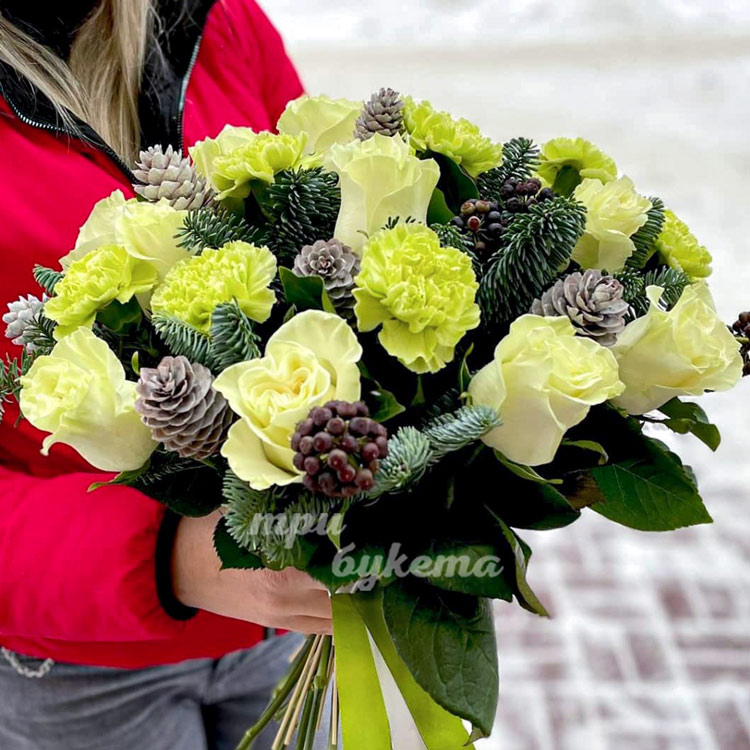 Новогодний букет из белой розы