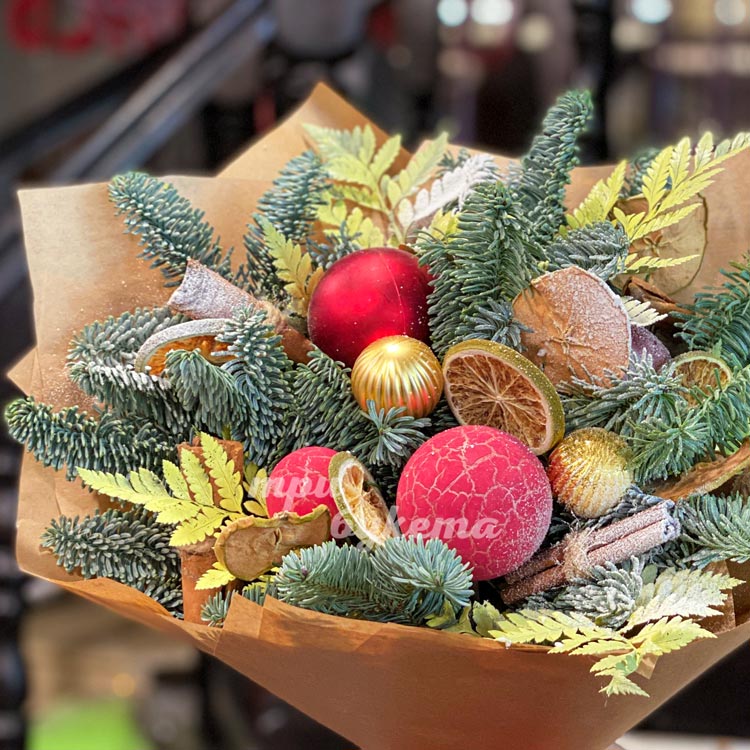 Новогодний букет из хвои в крафте