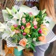 Орхидеи, розы и эустомы в ящичке