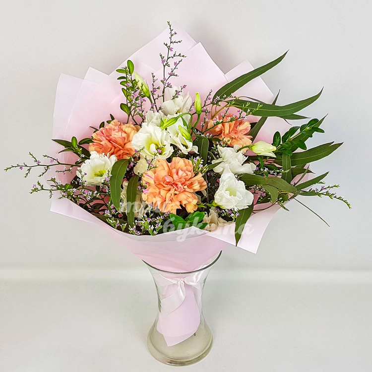 Персиковые гвоздики с эустомами