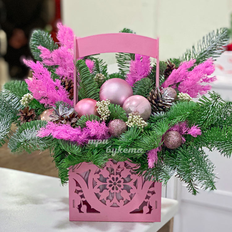 Розовый ящик с новогодним оформлением