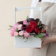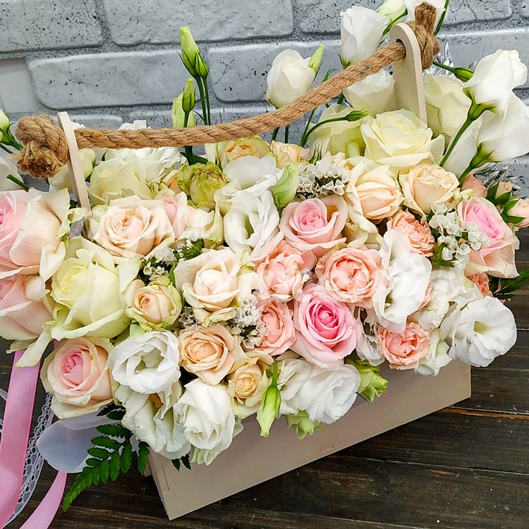 Розы и эустомы в ящичке