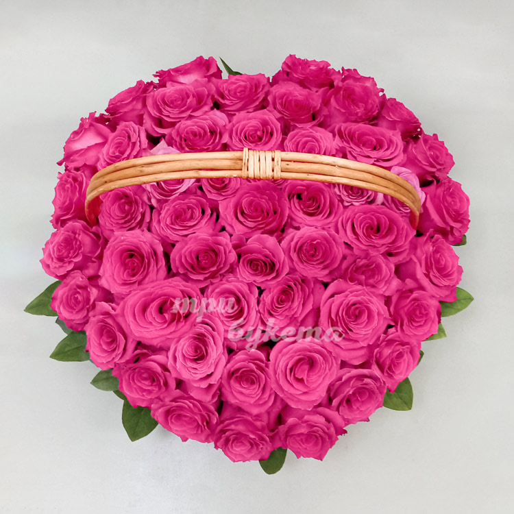 Сердце из 51 розы в корзине