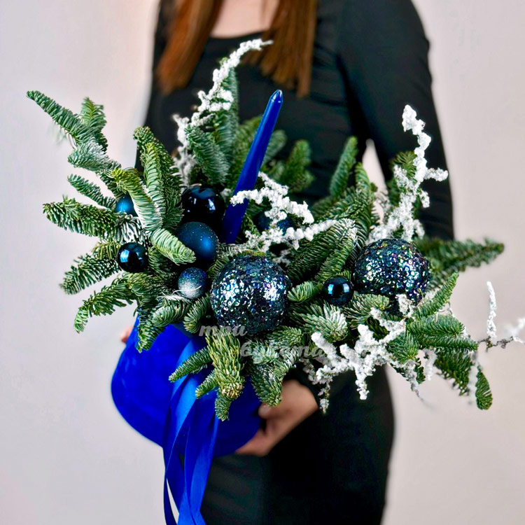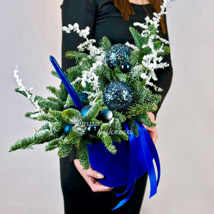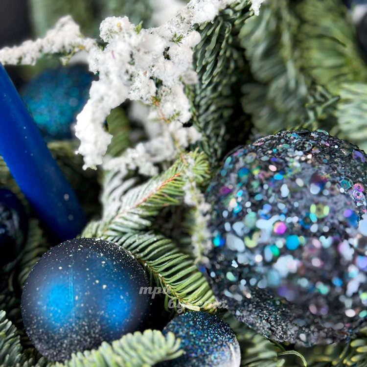 Синие елочные шары с нобилисом в коробке