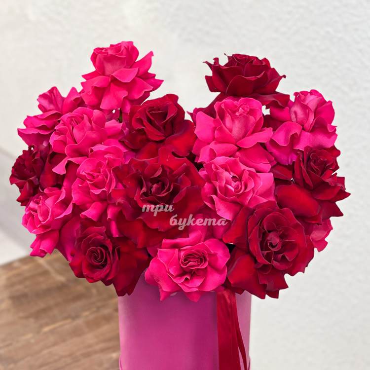 Яркие розы на 8 марта в шляпной коробке