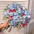 Яркий букет орхидей, гортензий и пионов