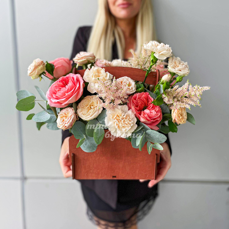 Ящичек роз и гвоздик на 1 сентября