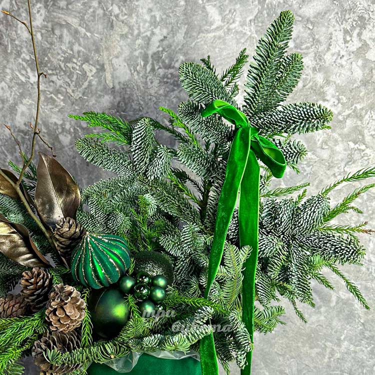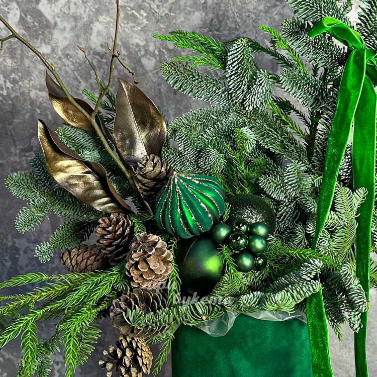 Зеленая бархатная коробка на новый год